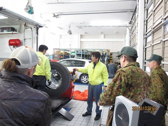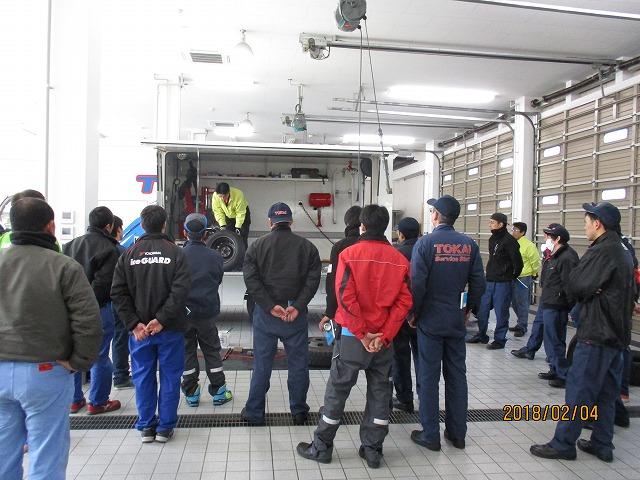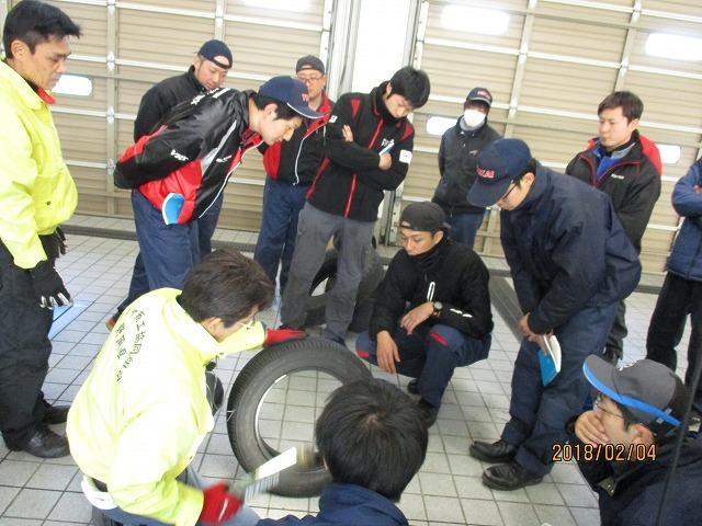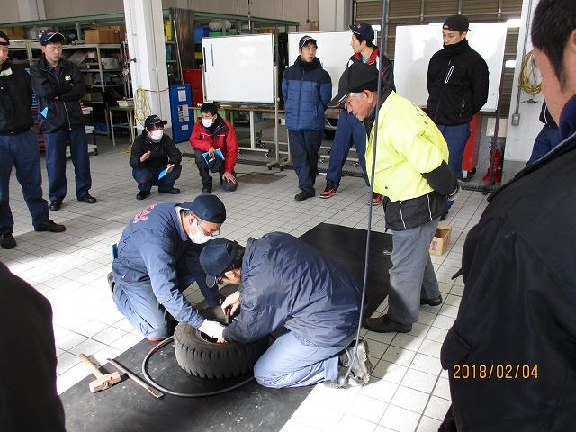整備士資格を取得されている方々を対象に開催した特別教育ということで、半日という短い時間でしたが、学科や事故事例などの紹介の他、講師の方々が持参したタイヤチェンジャーなどで実務的なタイヤ脱着及び空気充てん作業の実習もあわせて実施していただきました。