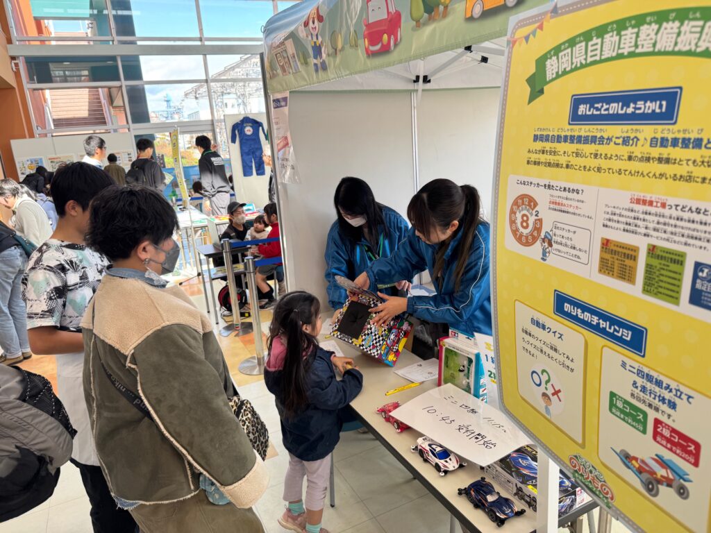 振興会ブースでは、ミニ四駆の製作・走行体験および自動車クイズを実施しました。
